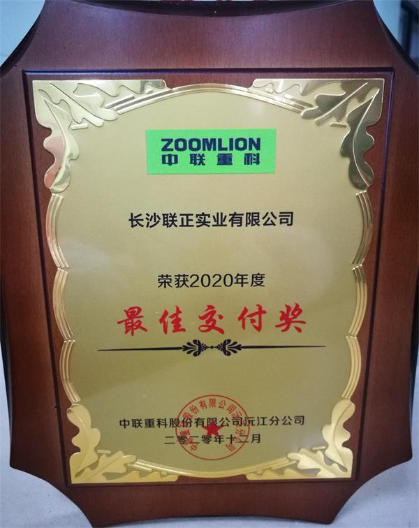 2021年1月8日,2020年度中联重科集团沅江分公司供应商大会在美丽的“洞庭明珠”沅江隆重召开。长沙联正实业有限公司以自身过硬的实力、良好的信誉和口碑、精细化的管理和优质的服务意识荣膺“2020年度中联重科沅江分公司最佳交付奖”。